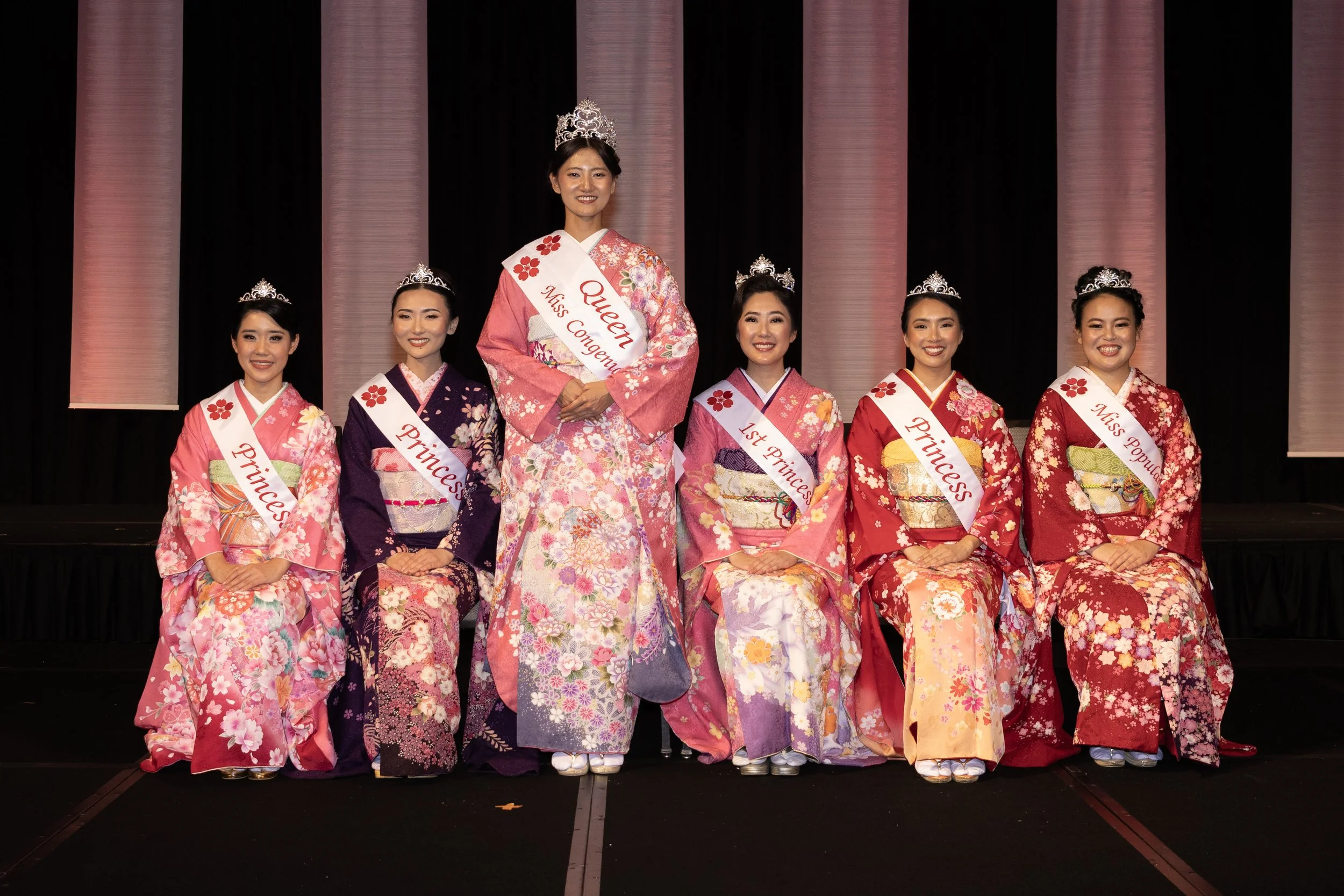 The 74th Cherry Blossom Festival Queen Contestants are pictured wearing an original design by Silver Sponsor, always a.line.